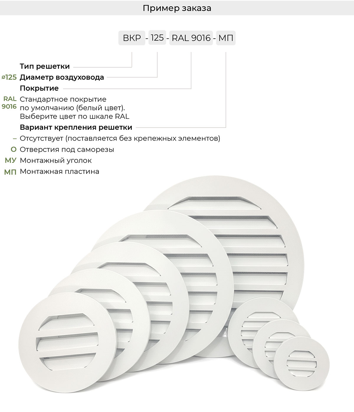 Круглая наружная решетка ВКР предназначена для установки в воздуховод круглого сечения как на приток, так и на вытяжку.