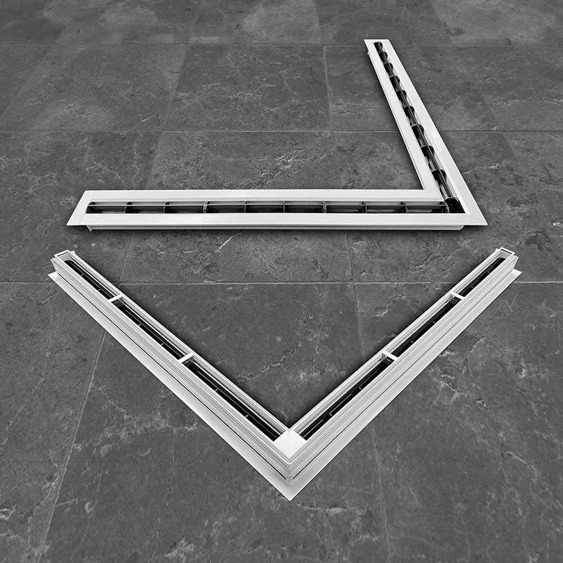 Как и все щелевые решетки, диффузор PL35 изготавливается в виде угловой секции для установки вентиляционной системы по всему периметру помещения.